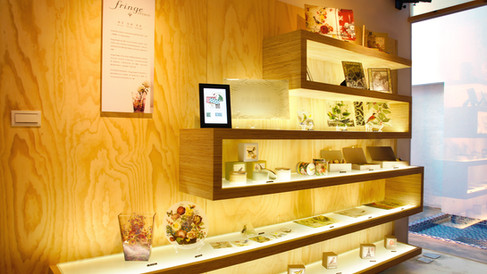 品牌設計理念,從古樸精緻的櫥窗, 門前典雅的木質長椅,陳列架裝潢以松木夾板製作, 呈現日系古色古香的感覺,其禮品店位於城市的中心地帶, 提供給消費者溫暖、優雅的購物環境。